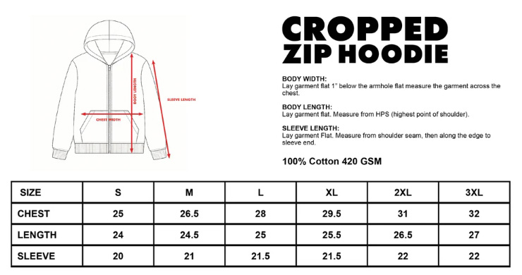 Double YKK zipper. Ribbing on cuff and bottom. Relaxed. Boxy fit. Cropped at waist. True to Size.