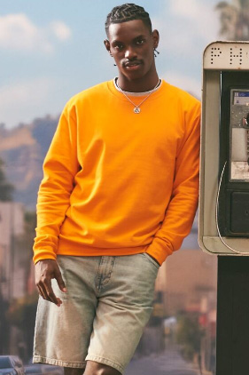 Midweight. Double needle stitching detail. Set in Sleeves. Ribbed cuffs and hem. Soft cotton face creates the ideal printing surface. Tear away label.