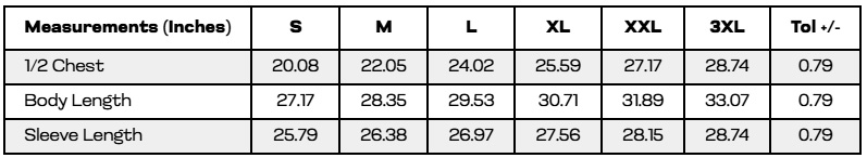 | S | M | L | XL | 2XL | 3XL | |||||||||